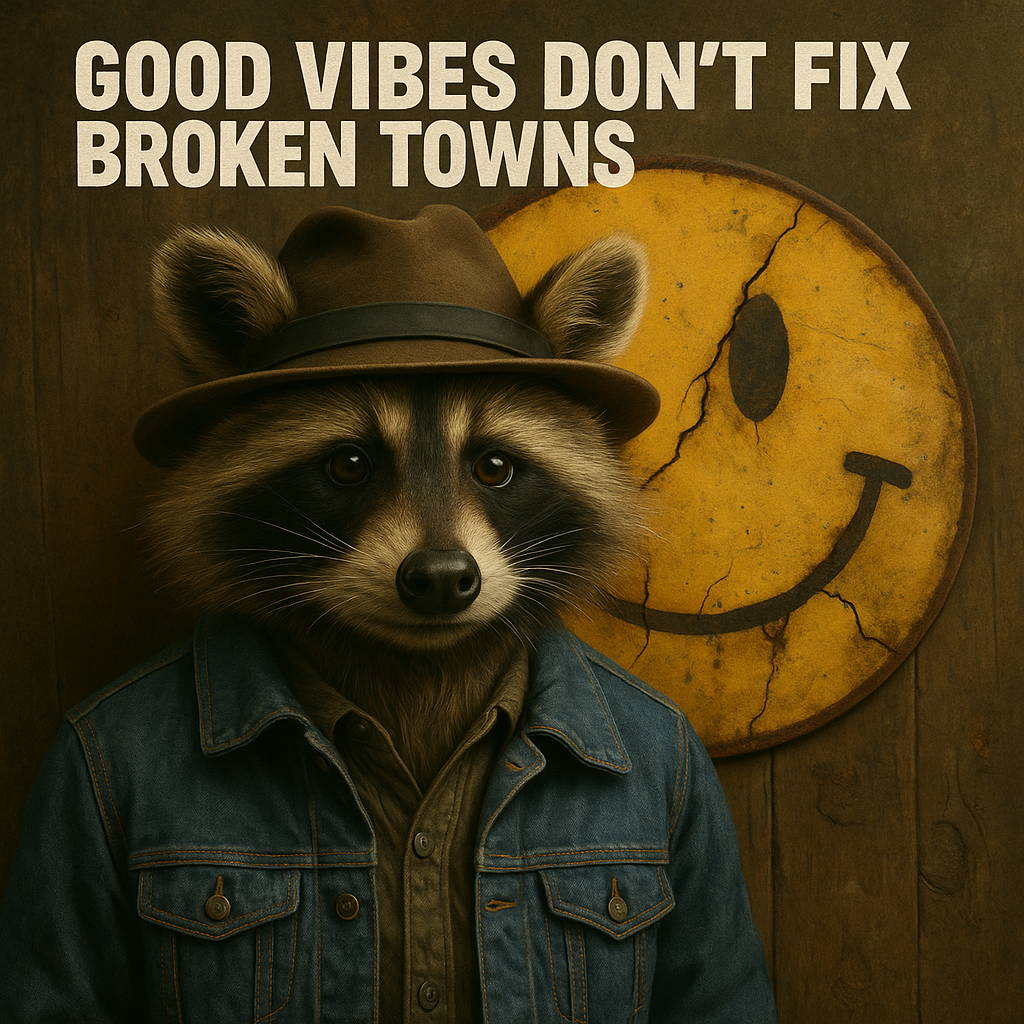 Good Vibes Don’t Fix Broken Towns is a call to action for anyone tired of sugarcoated silence. It’s about loving your community enough to speak hard truths — even when it’s uncomfortable. Real hope rolls up its sleeves.